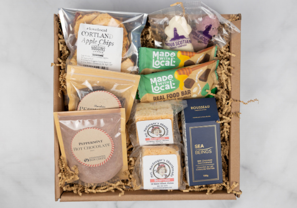 A delightful selection of Nova Scotia’s holiday sweets, perfect for sharing with loved ones or enjoying moments of seasonal indulgence. From rich chocolates and peppermint treats to buttery shortbreads and cozy hot chocolate, this curated box brings festive flavour and warmth to every celebration.